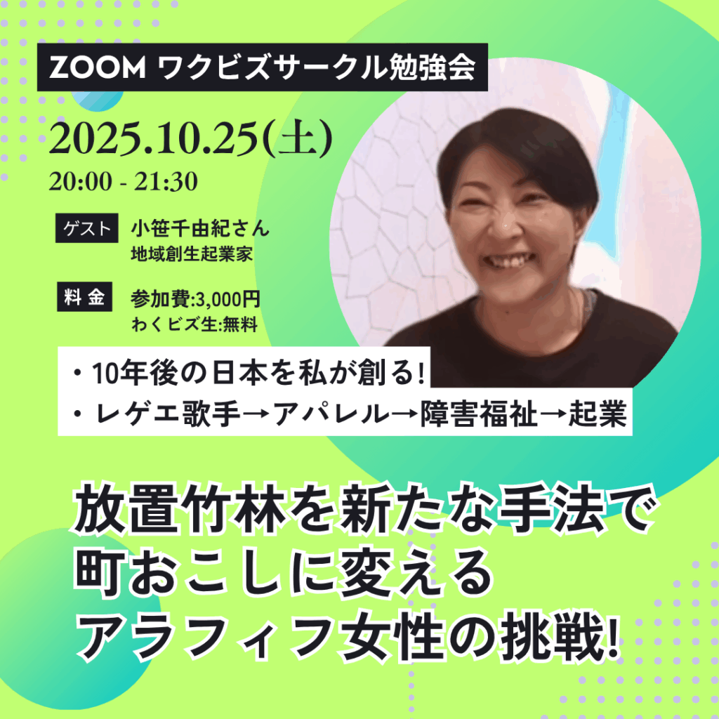 今回のわくビズサークル勉強会は、小笹千由紀さんをゲストにお迎えします。